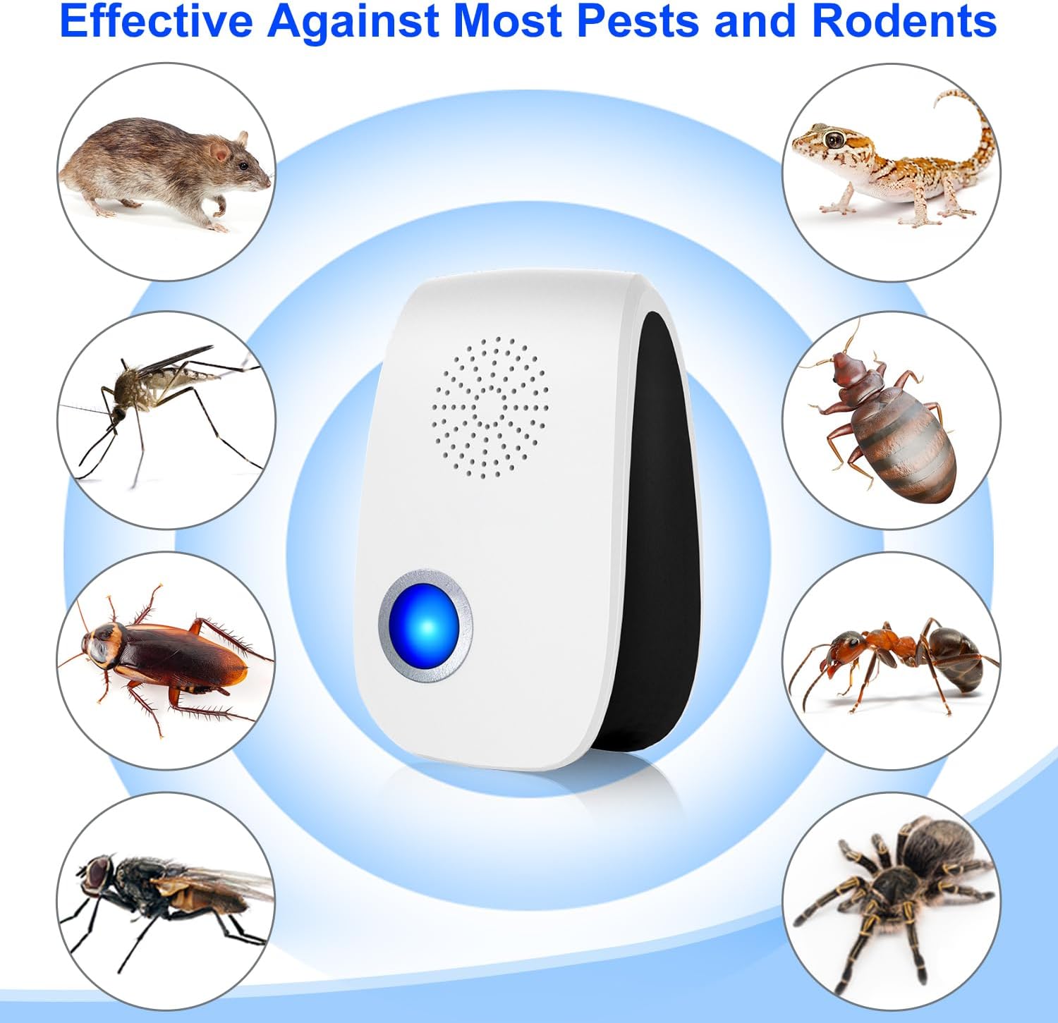 Effectively repels mice, mosquitoes, spiders, cockroaches, and a wide variety of insects. One set covers multiple rooms for comprehensive protection.